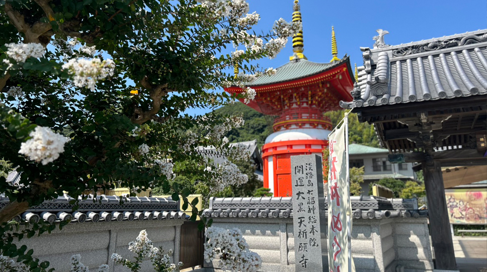 八浄寺は、開基は応永年間(1394年~1428年)と伝えられ、淡路島七福神霊場の総本院として知られています。ご本尊は阿弥陀如来像で、長寿と智慧を与えてくれると言われています。